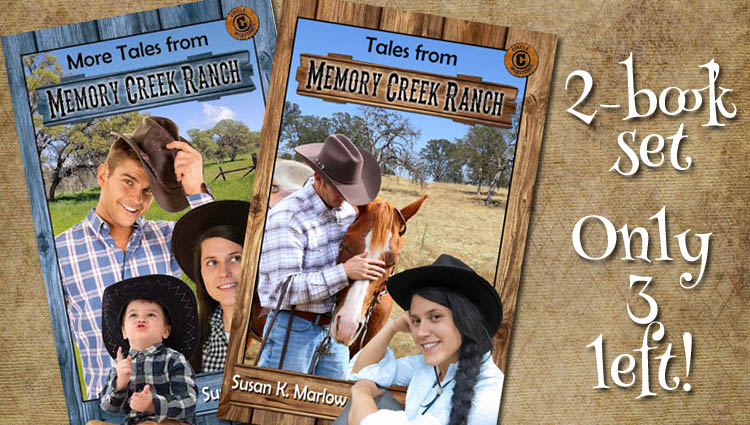 I showed up in California last weekend, and what met my eyes? Three sets of the “old” original Tales from Memory Creek Ranch and More Tales from Memory Creek Ranch on the shelves. With the new books coming out (to the tune of $12.99 each) in February, I’m getting rid of these old editions. I have 3 sets left.