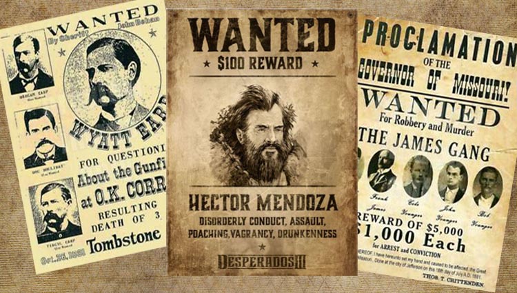 Anyway, when I studied the wanted poster, I saw that each of them pretty much displayed the same kind of information: A description and halfway decent picture of the outlaw (so people could recognize him or her), the crime they committed, and sometimes a “wanted: dead or alive” clause was included. Usually a reward amount was posted for information leading to the arrest of said felon (outlaw).