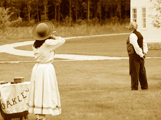 But I stray from my story. Once Annie started shooting, there was no stopping her. She even went up against a well-known crack shot named Frank Butler, who bet a whole $500 that he could out shoot any local yokel. Annie (my new heroine) shot 25 out of 25. Ol’ show-off Mr. Butler missed his last shot and lost the bet. Hurray for the local yokel, Annie! Come to find out, they got married back in 1876 (when I was 8). I reckon they had plenty in common.