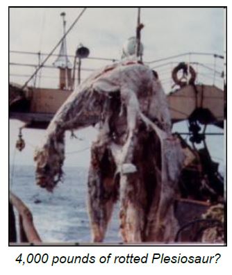 Could the serpent of Bear Lake have been a descendant of the great sea creatures God created on day five? Much evidence points to early peoples having interaction with both land and sea creatures that today we call dinosaurs. The word โdinosaurโ did not even come into use until 1841, less than 200 years ago. Before then these creatures were called โleviathan,โ and are mentioned in the Bible, along with the other word for huge creatures, โbehemoth.โ As recently as 1977 (before PhotoShop) Japanese fishermen hauled up a 4,000-pound sea creature. They took this picture but cut the thing loose. It was dead and rotting, and they didnโt want it spoiling their catch.