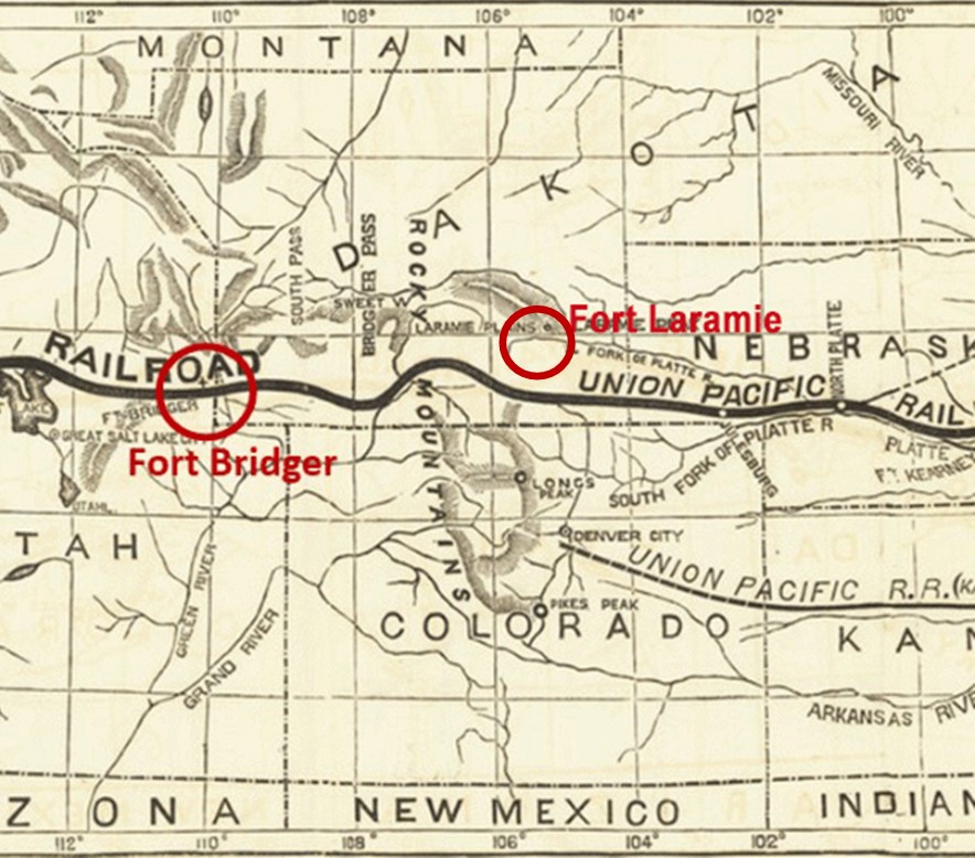That knowledge nearly killed me. Hunting buffalo all day! Sleeping in a teepee every night. Riding Midnight across the plains. This was not the first time I wished I was an Indian. Well, at eleven and a half, I now know enough to thank Pa for the offer (that would never come to pass) and put a good face on the move. The only interesting part will be, once again, that we will travel by railroad–at least most of the way. It goes by Cheyenne, in Wyoming Territory. Then we have to go by wagon the rest of the way. (I’m sure Pa will let me ride Midnight while he and Mama ride in the wagon with our household goods.)