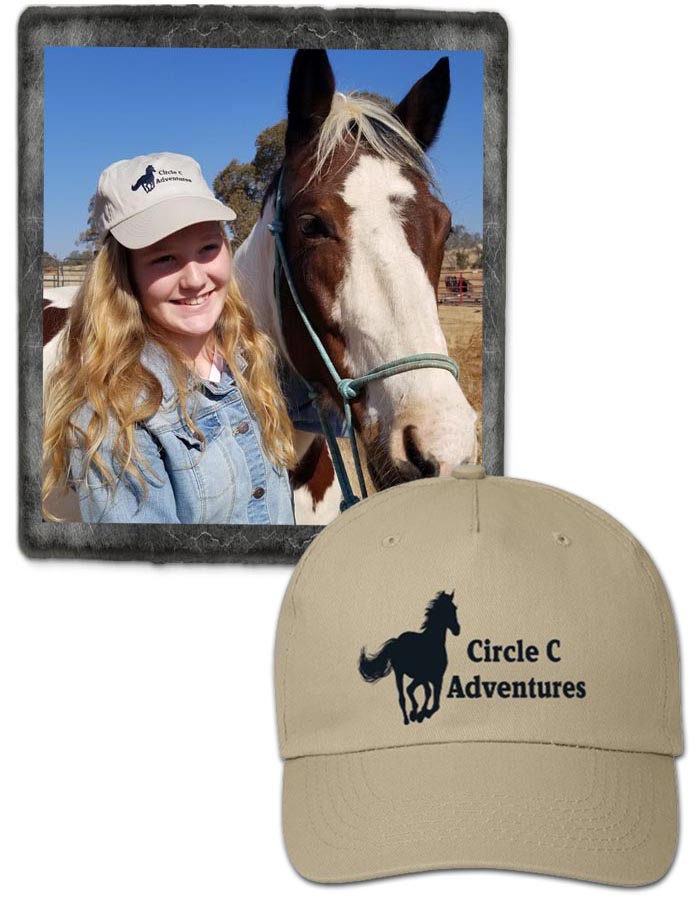 Since we are right in the middle of the summer writing contest, I want to choose a prize that is different from the writing contest prizes. It’s July, so . . . a Circle C hat to keep the sun out of your eyes sounds like a winner. To show you the hat really does work, here is my faithful model Ellie with their tobiano paint mare Lacey.