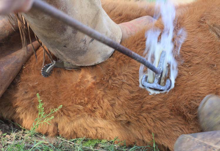 The first time I branded a calf I didn’t hold the iron down long enough, so Mitch had to keep it down for me. Three seconds might not seem long to you, but it’s a long time when the stink and the smoke is getting in your eyes and nose. And I felt real sorry for the calf. Oh, and did I mention the horrible stench of burning hair and hide? You just don’t forget that smell!