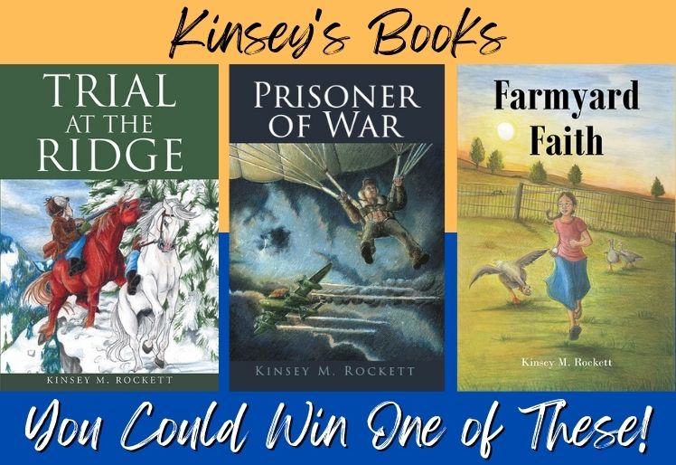 I’m excited to introduce Kinsey Rockett, a homeschool graduate and young author of the Whatsoever Stories (her website). So far, she has written and published three novels: Farmyard Faith (true humorous tales of growing up on a farm) and two historical novels, Prisoner of War and Trial at the Ridge. I bought her Farmyard Faith last summer at a homeschool conference in Spokane, WA, and it’s truly hilarious. It sounded so similar to the wacky things that happen on the Ross Ranch that I passed the book along to my daughter’s family for their enjoyment.