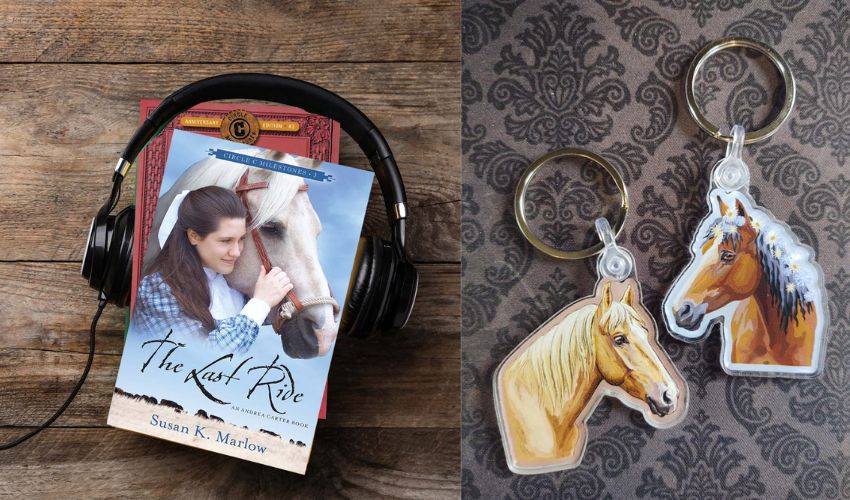 Since this is the same Elizabeth Carter (Mother) quiz but from the older books, I’m offering the same prize! Any Circle C (or Goldtown) digital audio book, plus a brand-new glossy, acrylic keychain (choose “Taffy” or “Mane Flowers”).