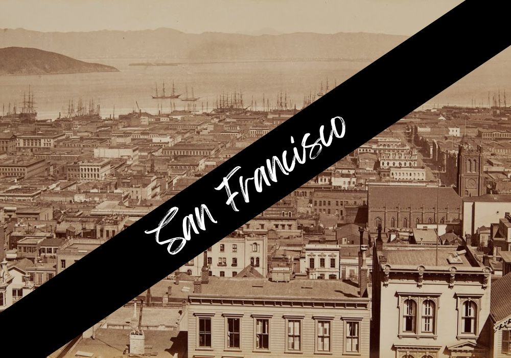The train ride was in the first-class compartment called a Pullman car. And boy howdy, was it ever fancy! Not your usual seats that either all face forward or face each other. No, sirree! Look at those fancy, comfy individual seats. Curtains on the windows and chandeliers hanging from the ceiling. Justin took me to the Pullman dining car for luncheon. It took a bit of steady walking (the train swayed a lot), but it was worth it. The dining car was fancier than the best restaurant in Fresno. By the time we’d enjoyed the four- or five-course meal, we were practically in Oakland! Then a quick ferry hop and we landed in the city.
