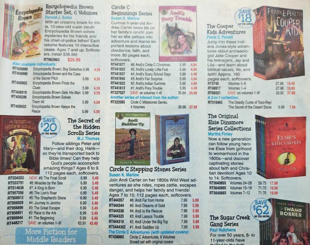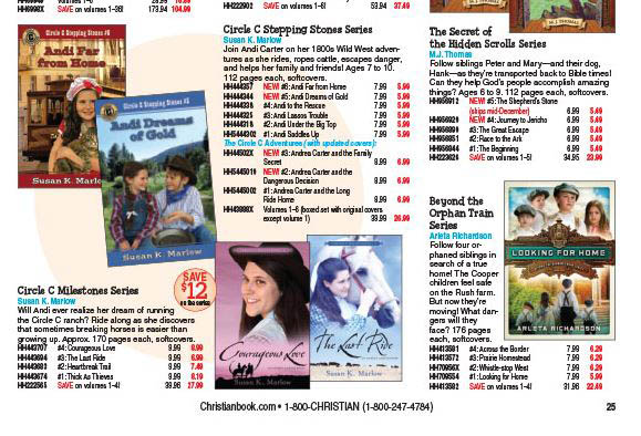 Below is Mrs. M’s very special spot for the Circle C books. It’s the ChristianBook.com Kid’s catalogs. Why is this so special? Because out of the thousands of books they sell and could feature, they keep choosing the Circle C series.