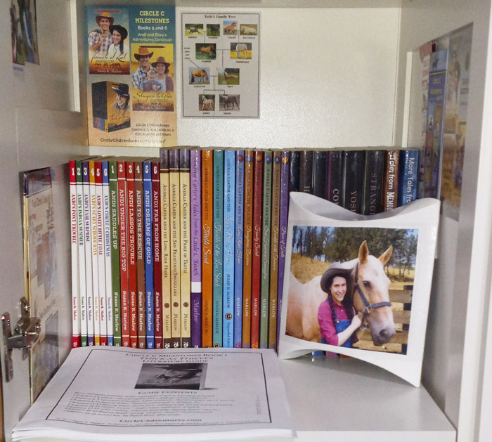 Mrs. M got this idea when Daisy J. sent her a picture of a special place where she collects Circle C books and fun stuff. I thought it might be fun to put out a call to anyone who would like to share their “Circle C Special Spot” (if you have one). Clearly, Daisy does. Email me at CircleCAdventures@gmail.com and attach a photo of your collections of anything Circle C related and I will devote an entire blog post to sharing your photos. Also, include a favorite “member” of your Circle C collection and why.