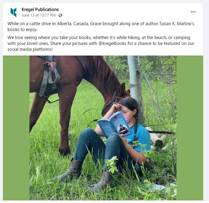 You can highlight your collection, like Daisy has done below. Or you can send a picture of you in a special spot reading one of the Circle C books (like Grace in the second picture).