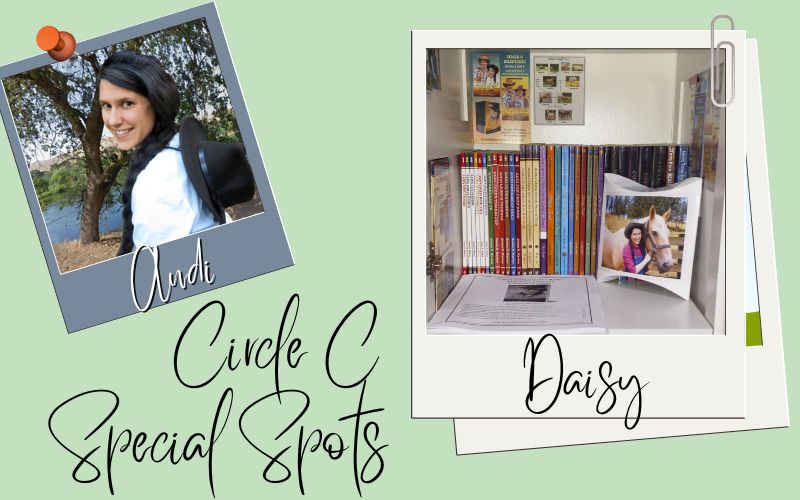 Mrs. M got this idea when Daisy J. sent her a picture of a special place where she collects Circle C books and fun stuff. I thought it might be fun to put out a call to anyone who would like to share their “Circle C Special Spot” (if you have one). Clearly, Daisy does. Email me at CircleCAdventures@gmail.com and attach a photo of your collections of anything Circle C related and I will devote an entire blog post to sharing your photos. Also, include a favorite “member” of your Circle C collection and why.