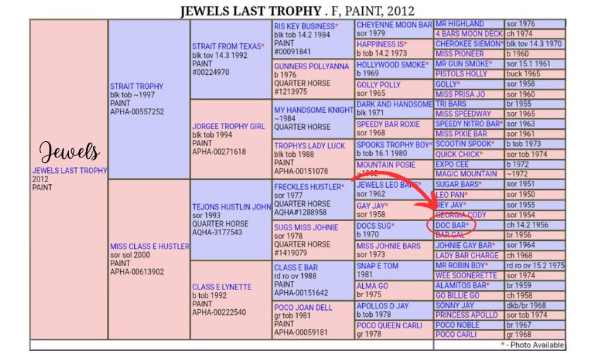 Kristel dug around deeper into Jewels (Taffy’s dam) pedigree. Guess what! Jewels’s great-great-great grandsire is also DOC BAR! No wonder her foals are exquisite. She never expected this. She just wanted some calm foals and Rubicon was only about 45 minutes away. Who knew, right?