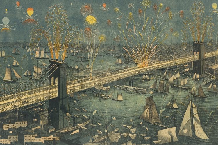 For those who might be wondering if Andi and her family were able to enjoy a fireworks display in the 1800s, the answer is a resounding yes. And the louder the better. This image is the Brooklyn Bridge (New York City) on July 4, 1883, a year before the setting of The Last Ride. Daniel tells Andi all about the building of the new bridge. All kinds of fireworks are going off. Below this image is another. Those New Yorkers really know how to throw a fireworks party!