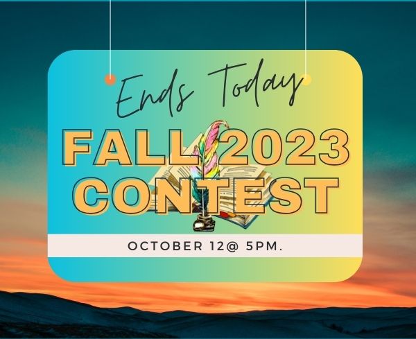 Just a quick reminder. The fall 2023 writing contest ends Thursday, October 12, at 5pm Pacific Time. That is today. As soon as possible after the contest closes, I will send off your entries to my two judges (one for each age group). I have also looked over each one of your stories, so if the judges have trouble coming up with a winner from each category, I am available to give them input. My goal is to announce the winners on Monday, October 16, but if it takes the judges longer to come up with their choices, then winners will be posted later in the week. The day after the winners are posted, I hope to have the rest of the entries uploaded to the contest entries fan fiction site.