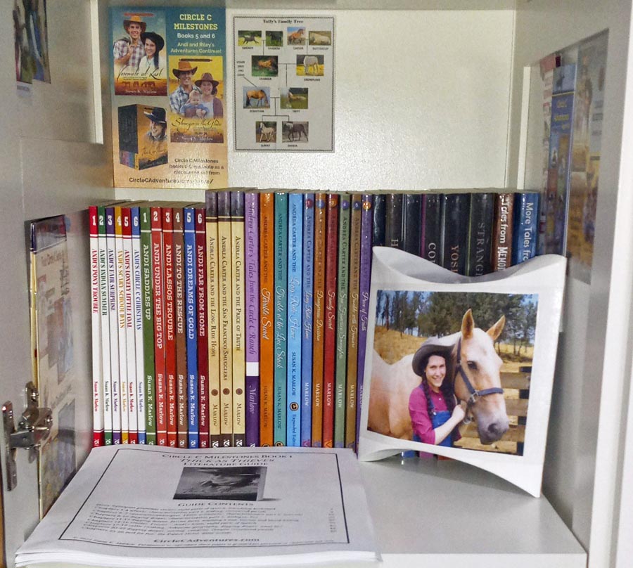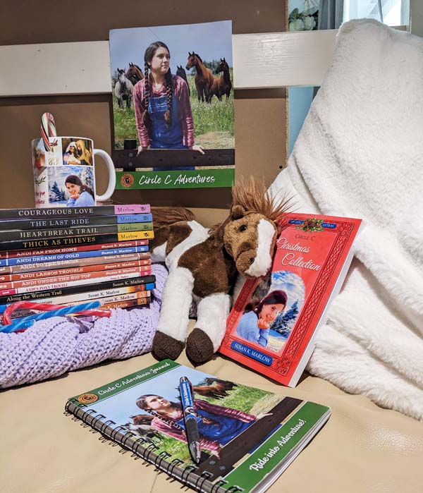 She enjoys staging books for photos and sent these two vintage shots, something she created for the old editions of the Circle C Adventures series. 📚