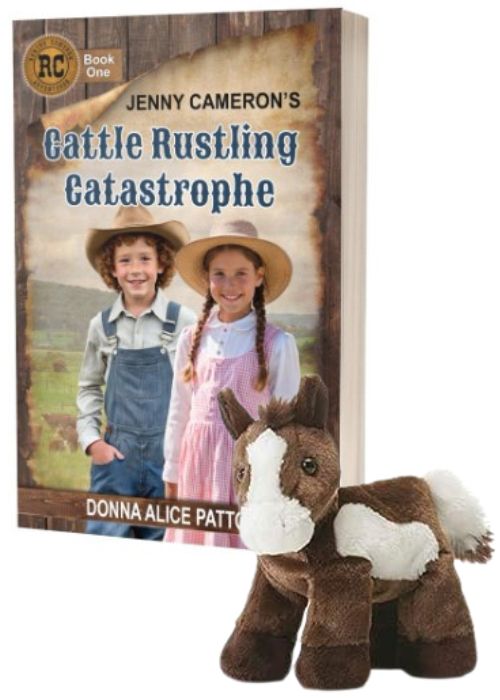 I’m excited to share an author visit with my friend and fellow author, Donna Alice Patton. She lives in Ohio. I live in Washington State. So, how in the world did we meet? Read on and you’ll find out, and laugh a bit too. Then, scroll down and enjoy the interview. She’s giving away a copy of her brand-new book, Jenny Cameron’s Cattle Rustling Catastrophe, and a plush “stuffie” of Jenny’s horse, Fancy.