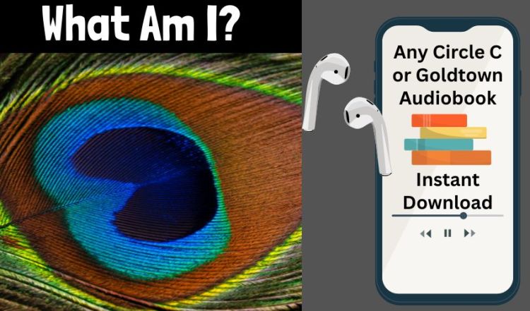 I always announce the winner(s) of the current What Am I? game in the next month’s Circle C newsletter, but since only two have (so far) claimed their prize, I thought I’d announce the winners here and encourage those winners to check their emails. Out of 134 entries, 108 guessed correctly that it is a “peacock feather.” Random.org chose four winners: Evelyn N., Jalaena Grace, Brooks, and Faith H. Faith H. claimed her audiobook, Courageous Love, and Grace is still deciding. It was fun to be able to give away four prizes this time. Stay tuned to January’s What Am I game.