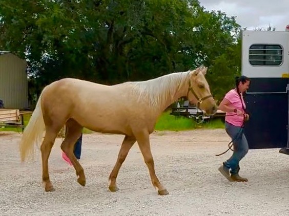 Click the image to watch a short video of Kody (look how golden he is becoming!) climbing aboard the trailer to begin his new life. I think he was eager to go, as living on the Painted Acres Ranch is very boring for such a smart colt. He needs to work! He will never look back.