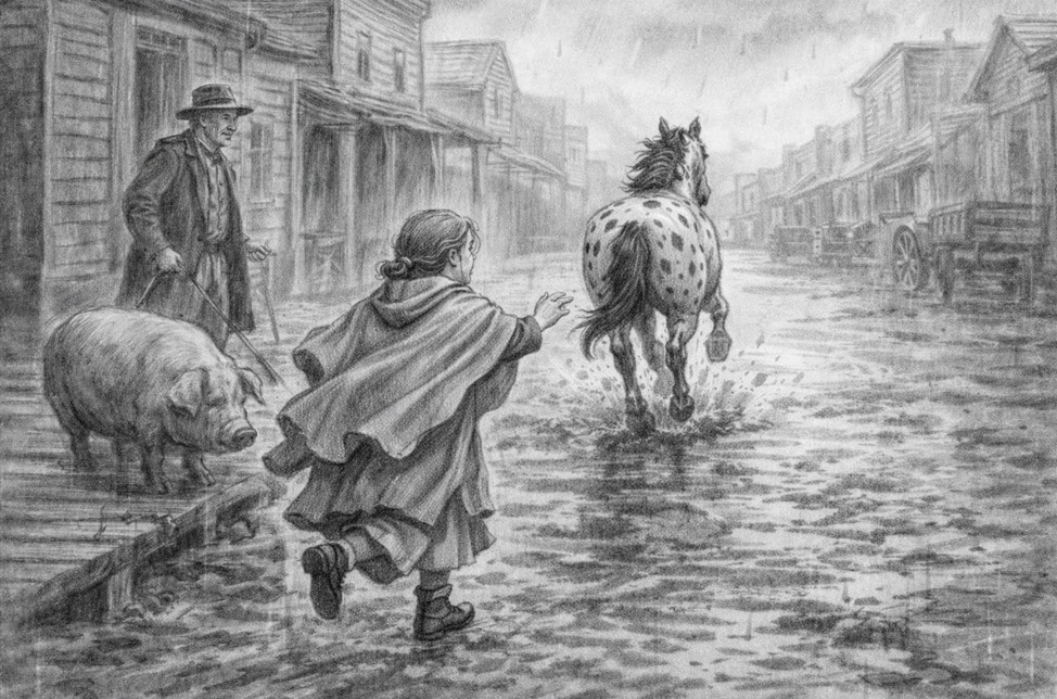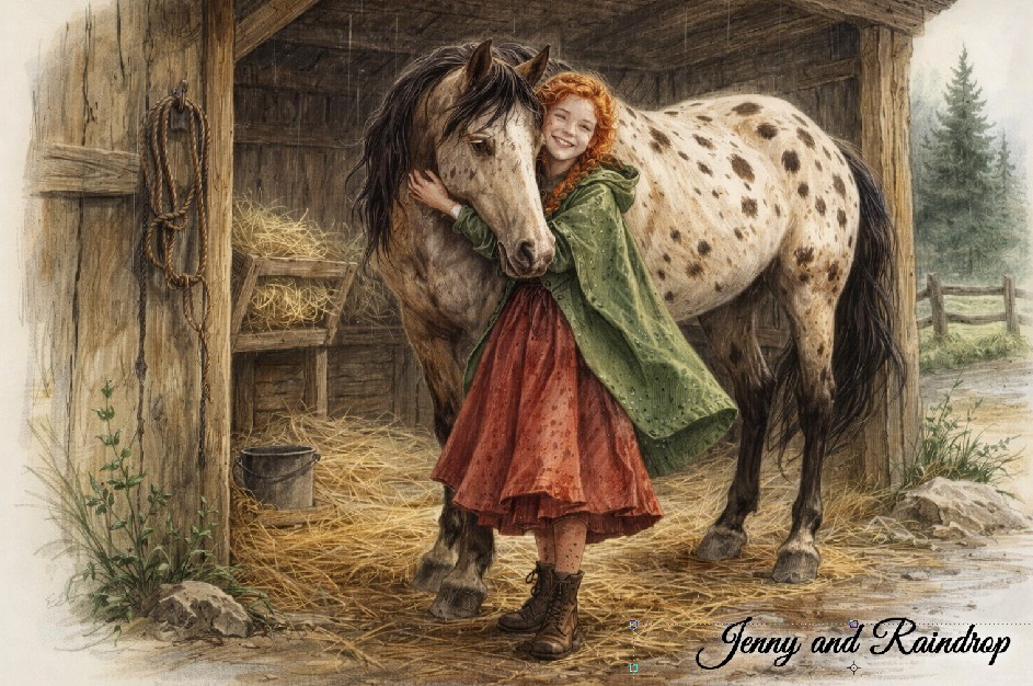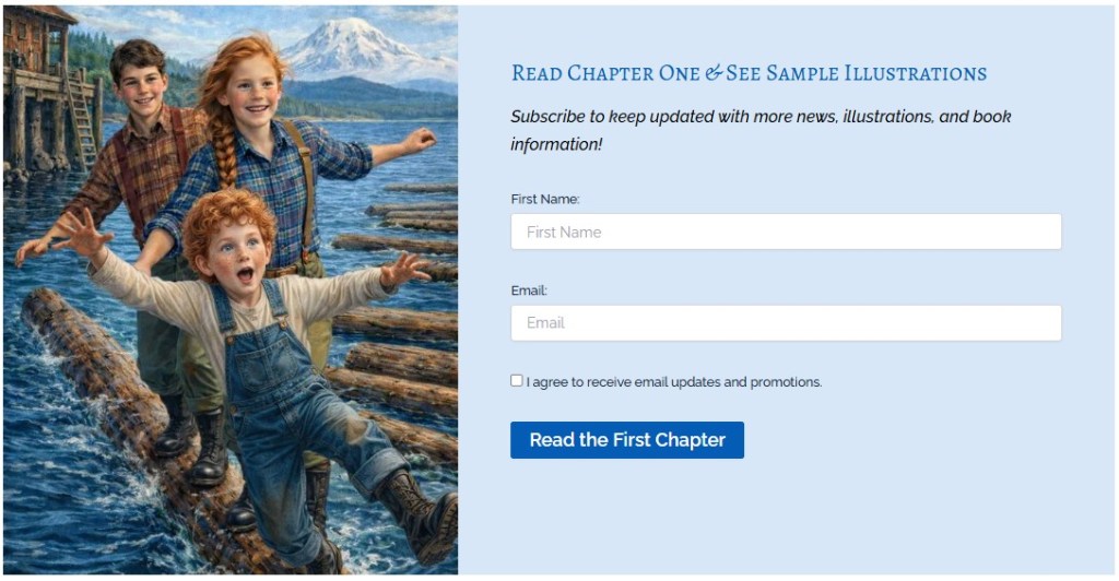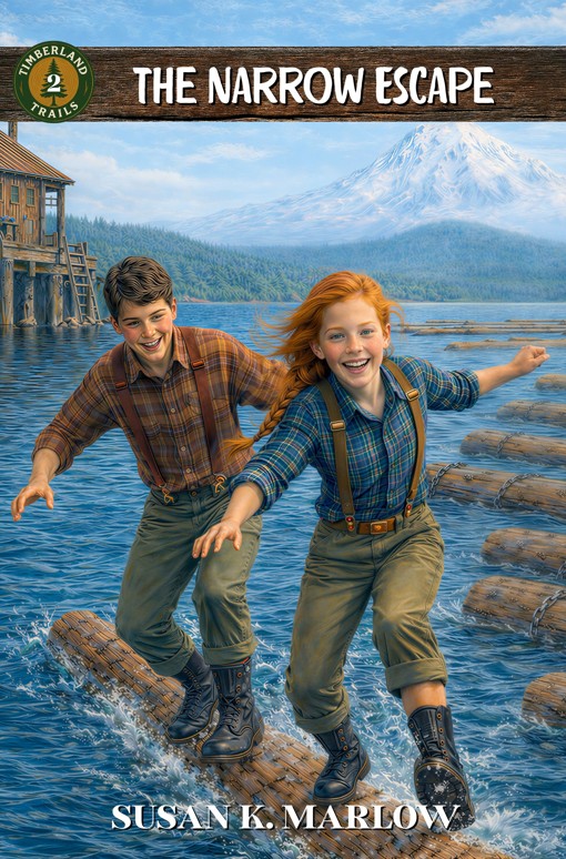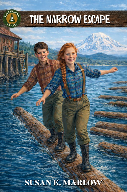 Then, out of the blue, I created this version. I really like how closely the two kids resemble my vision of Micah and Jenny. So, here is a new cover to go up against the “lots of action” cover. So hard to decide. “Lots of action” or the anticipation of action, like they’re just getting ready to have a log-rolling contest.