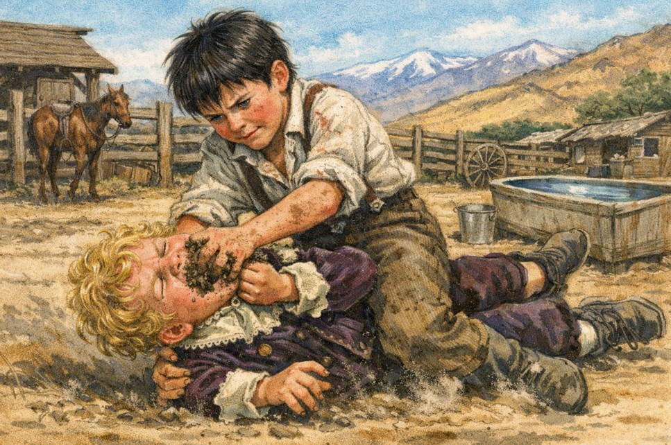 Chad stood up. Then he yanked Freddy to his feet and dragged the choking, blubbering boy to the horse trough several yards away. One big push landed Freddy in the trough.