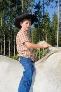 Chad has black hair and blue eyes, and he’s pretty tall–about six feet. He thinks he knows everything, and he tries to tell me what to do all the time. That makes him bossy, and I don’t like it at all. He’s got himself a temper, and I’ve been on the receiving end of it more than once. I sometimes feel like I can’t do anything right. He has no patience for work sloppily done or not done at all, and a cowhand caught mistreating a horse is sent packing, along with a few scorching words from the boss.