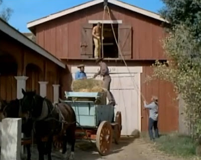 Around back are numerous outbuildings. The horse barn stores hay in the loft. (This is the barn where I confronted my cousin Daniel about his stealing from town. He was hiding his loot up in the loft with the hay.) Most horses stay corralled outdoors, and the ranch hands lasso their horses for the day. The saddle horses for the family and guests are often stabled. In addition to roomy stalls, each horse has a large paddock for air and exercise.