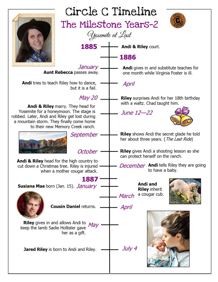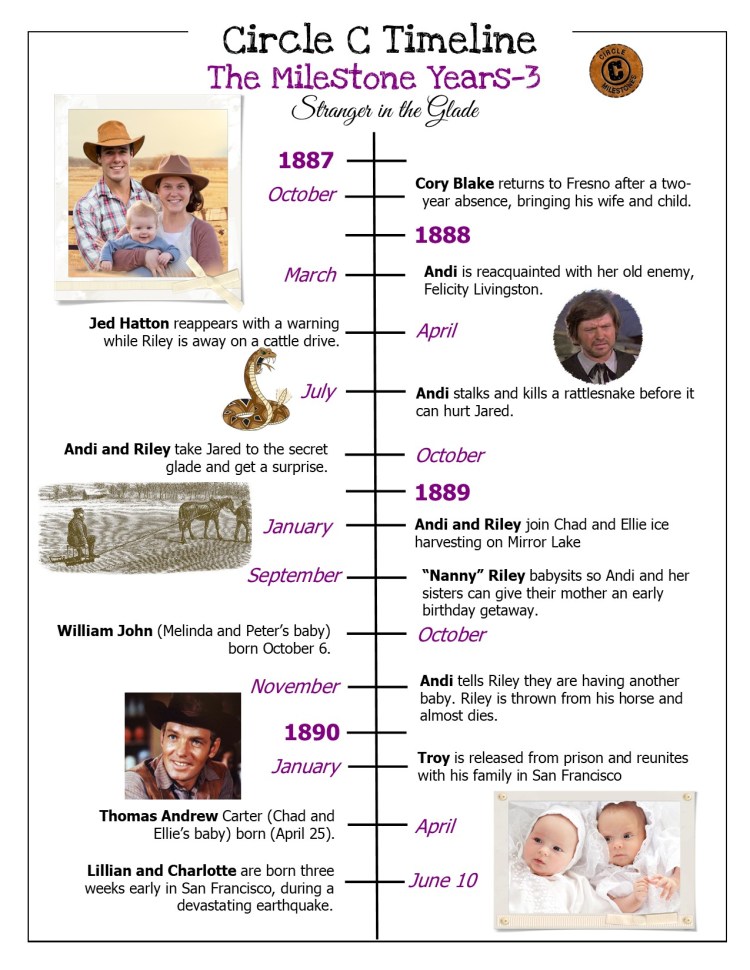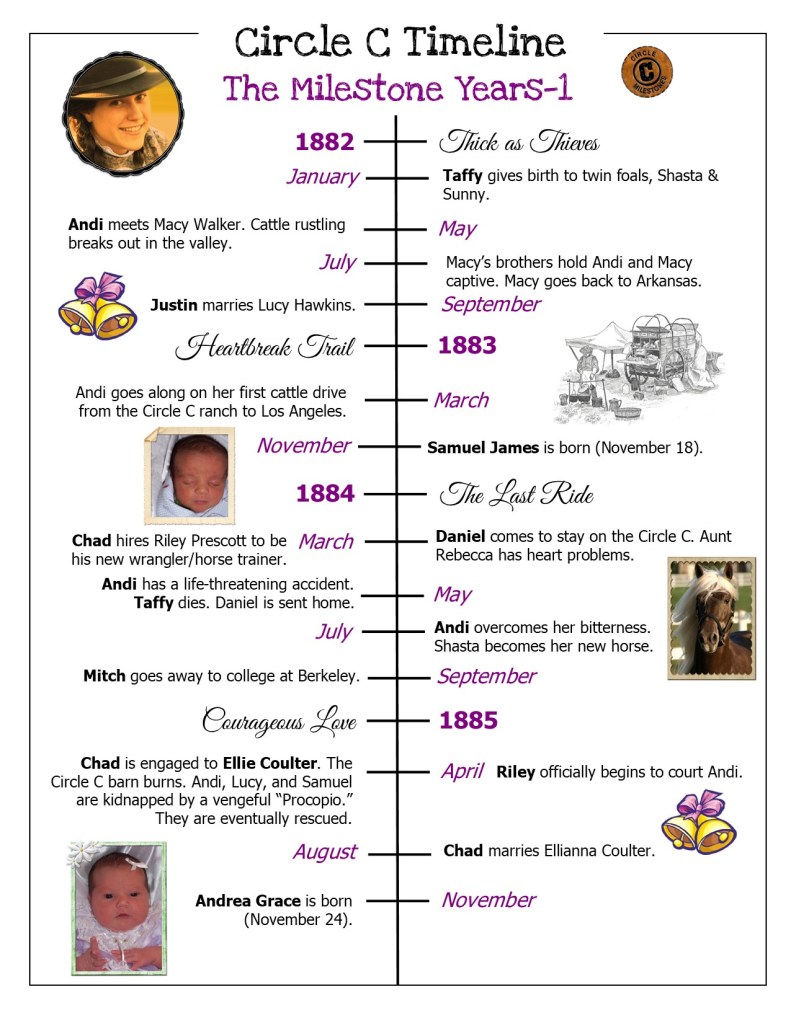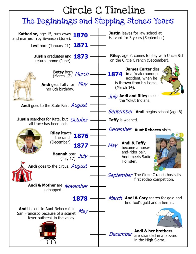 Need to know when something important happened and you can’t remember or don’t want to flip through the Circle C books? This page is your resource for the Carter family tree, along with an extensive timeline that covers 1848-1890.