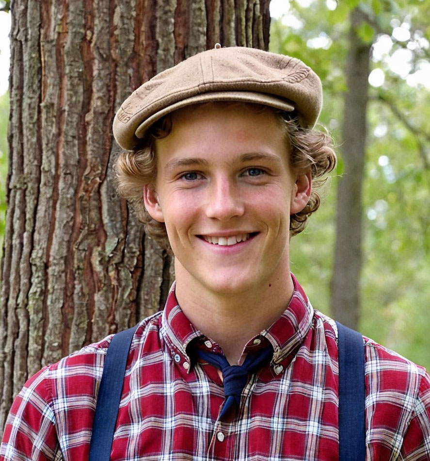 This is Caleb. He’s 18 and the youngest of the three Grant Brothers “trio.” He likes logging but prefers the sawmill and loading and unloading the lumber onto the ships. He likes to accompany his father on business trips.