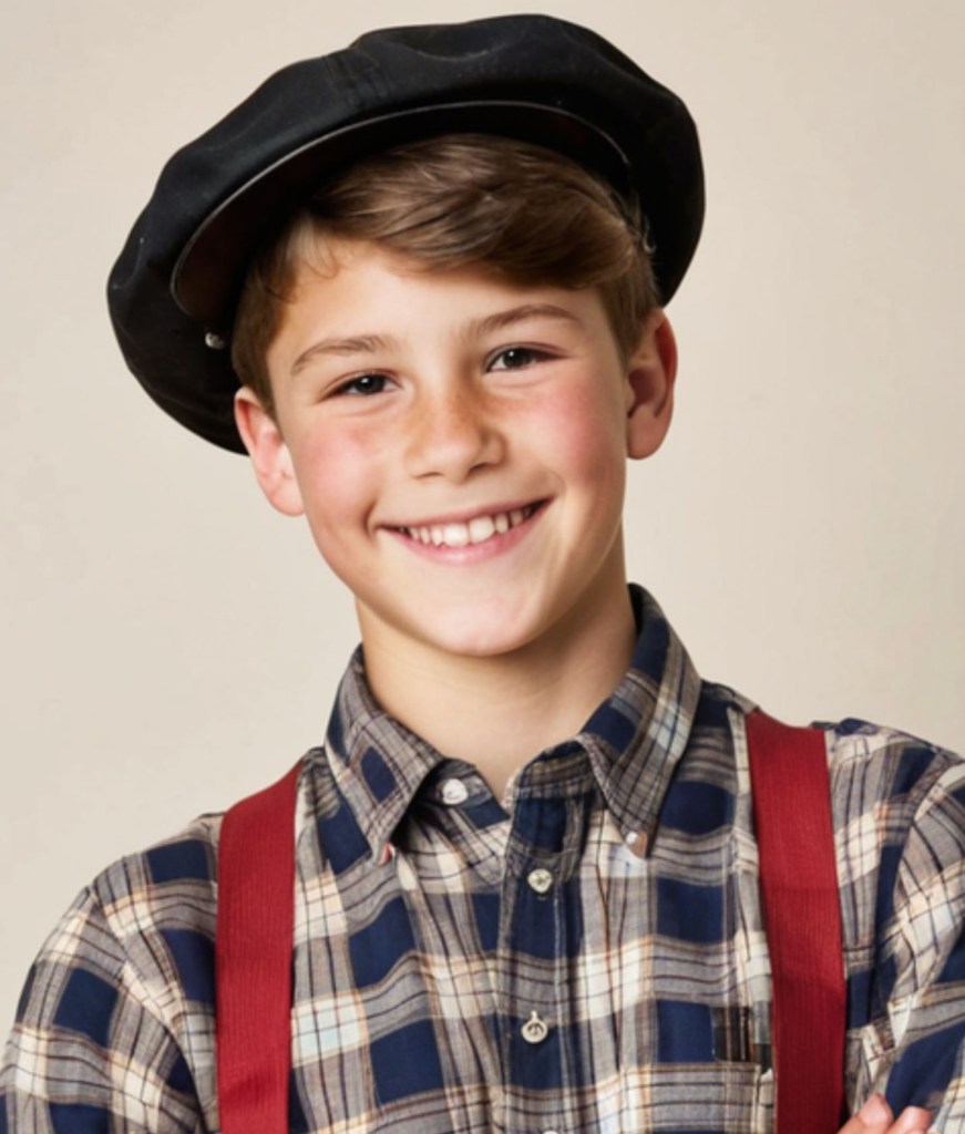 The youngest is Gideon, age 9. He is the only other red-haired Grant sibling. He’s all arms and legs and wears his brothers’ old hand-me-down overalls.