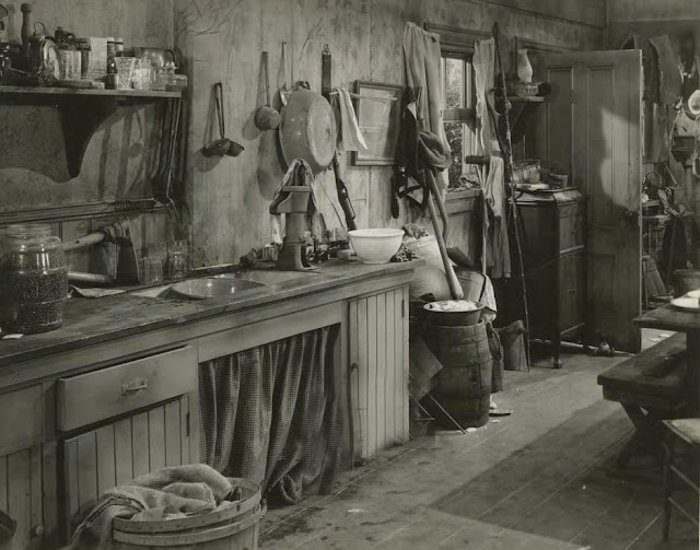 The Hollister cabin is not very big to house 11 members of one family. But there is an attic, and that is where the children sleep (under that peaked part of the roof). Their yard is a dumping ground, but nobody seems to care.