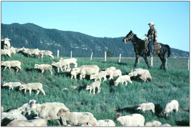 The sheep on the Hollister land. They are grazing on what used to be Circle C land, before the creek changed its course. The fencing in the background is what’s left of the posts Chad and the Circle C ranch hands put up in the now-dry Spring Creek. But Mr. Hollister tore them down so the sheep could get through. He insists all this good grazing land is now his and says, “God changed the creek.”