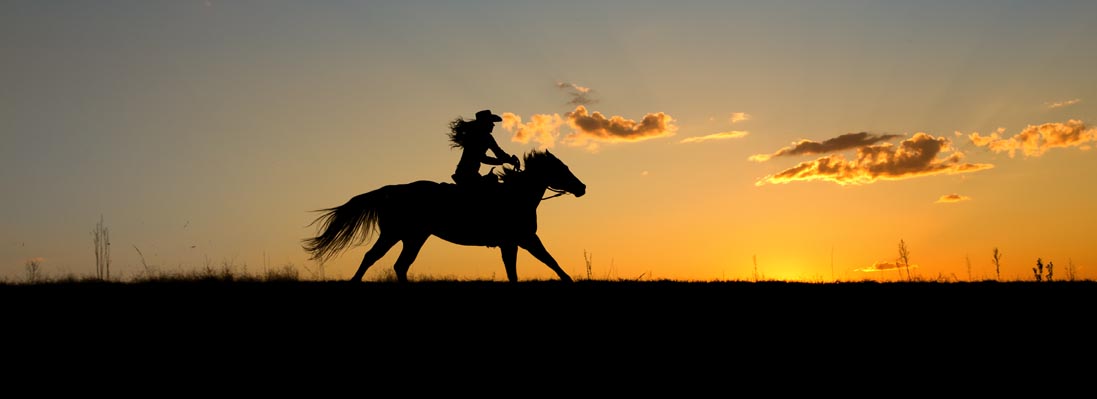 Previous Image Next Image Silhouette or woman and horse running across horizon as the sun goes down. Silhouette or woman and horse running across horizon as the sun goes down.